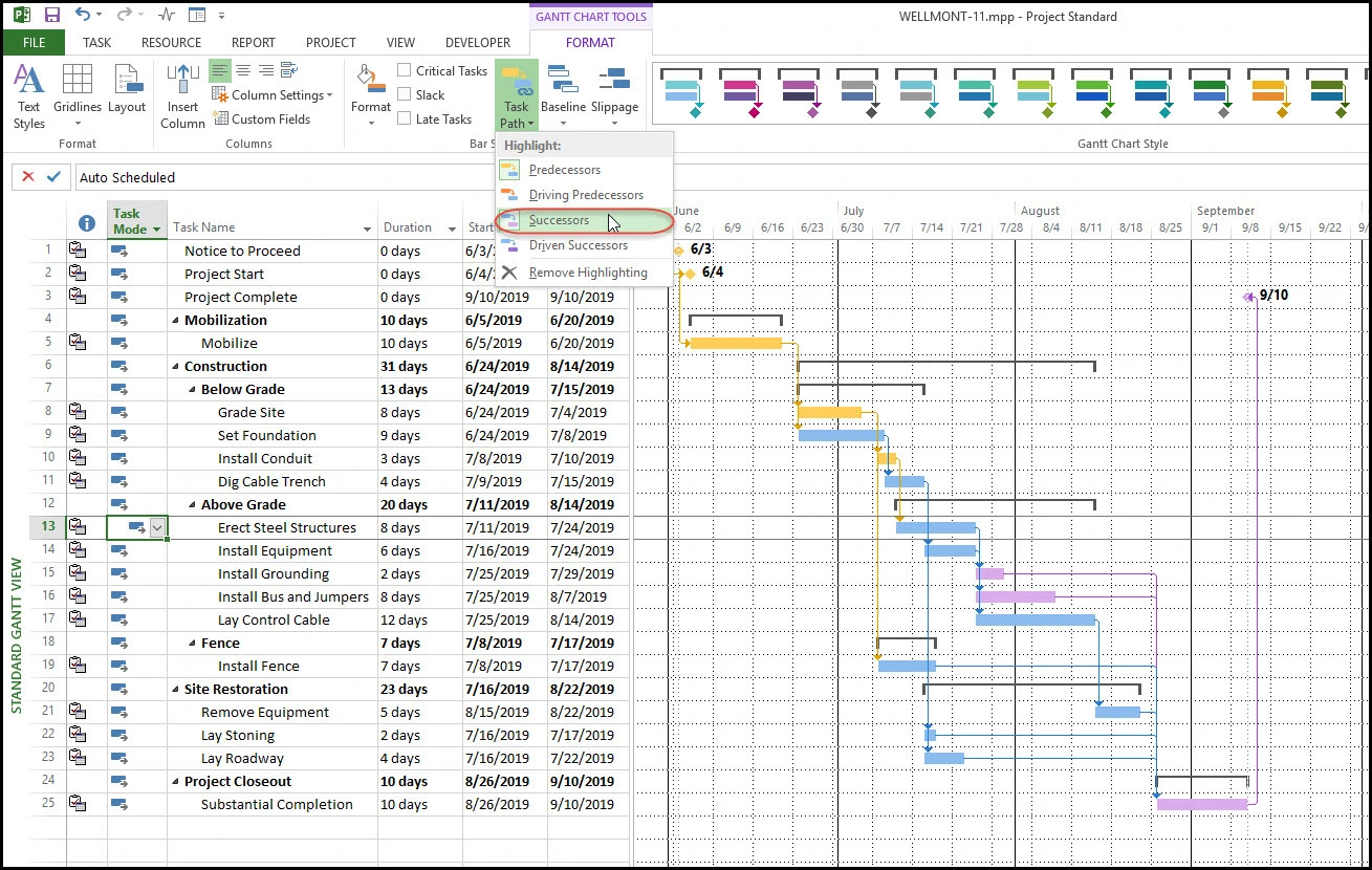 Интерфейс MS Project