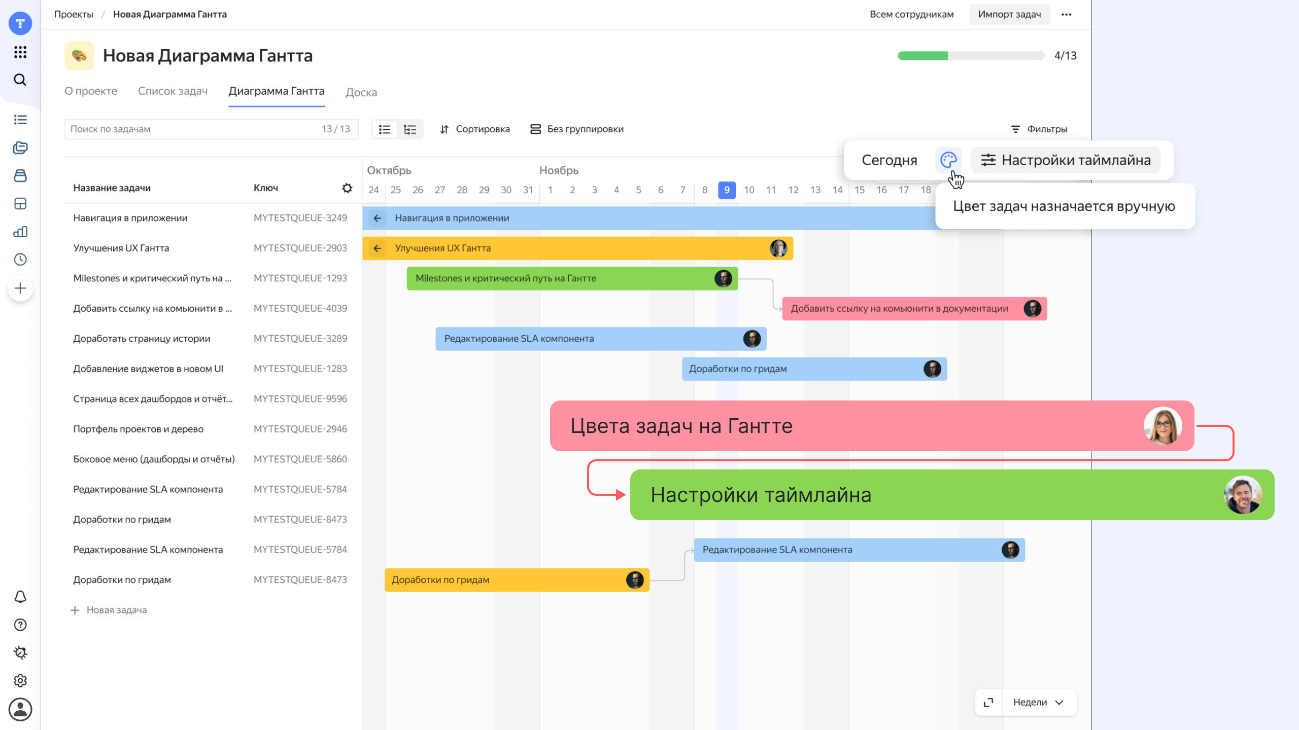 - Полноценная Диаграмма Ганта. Не просто красивая картинка, а инструмент с поддержкой жестких зависимостей (Финиш-Старт, Старт-Старт), вех (milestones) и критического пути.