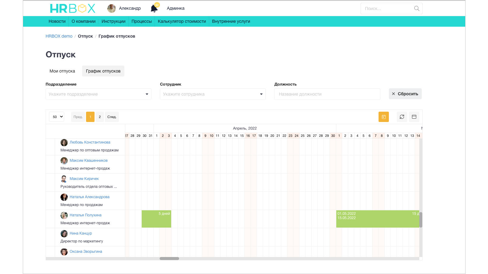 - кабинет сотрудника: единое окно для подачи заявок на отпуск и заказа справок;