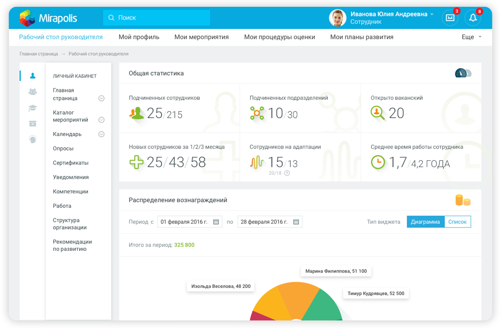 Интерфейс Mirapolis HCM