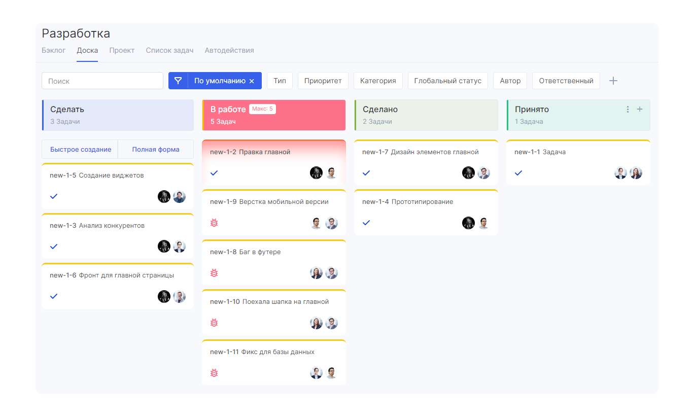 - настройка канбан-досок под нужды команды с зонами и цветовыми метками;