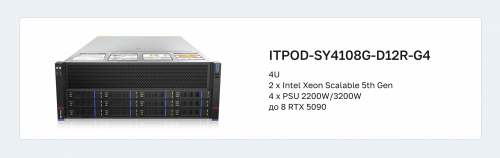Дополнительный плюс — совместимость. Многие компании прошли первую волну экспериментов на RTX 4090, и теперь им нужно масштабирование. ITPOD-коробка позволяет объединить в одном сервере как новое поколение, так и то, что уже есть у заказчика, сохранив инвестиции и упростив переход на 5090. Это делает платформу гибкой и устойчивой к обновлениям ИИ-ландшафта.